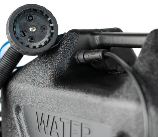 Capacité 22l / Jusqu’à 5 minutes de douche/rinçage / Pompe intégrée, débit 12l/min / Alimenté par un cordon d’alimentation amovible de 12 V avec prise allume-cigare (inclus) / Longueur du cordon d’alimentation : 4,0 m / Consommation électrique maximale : 4,5 A / Connecteur rapide pour tuyau d’arrosage standard / Pistolet pulvérisateur 7 fonctions / Dimensions : L17,9 cm x L34,8 cm x H46,0 cm / Comprend : Pompe, tuyau et pistolet pulvérisateur, robinet, bonde, cordon d’alimentation et capuchon anti-poussière / Jerrican fabriqué à partir de polyéthylène haute densité (HDPE) noir de qualité alimentaire / Stabilisé aux UV